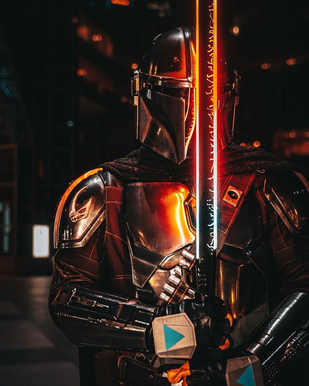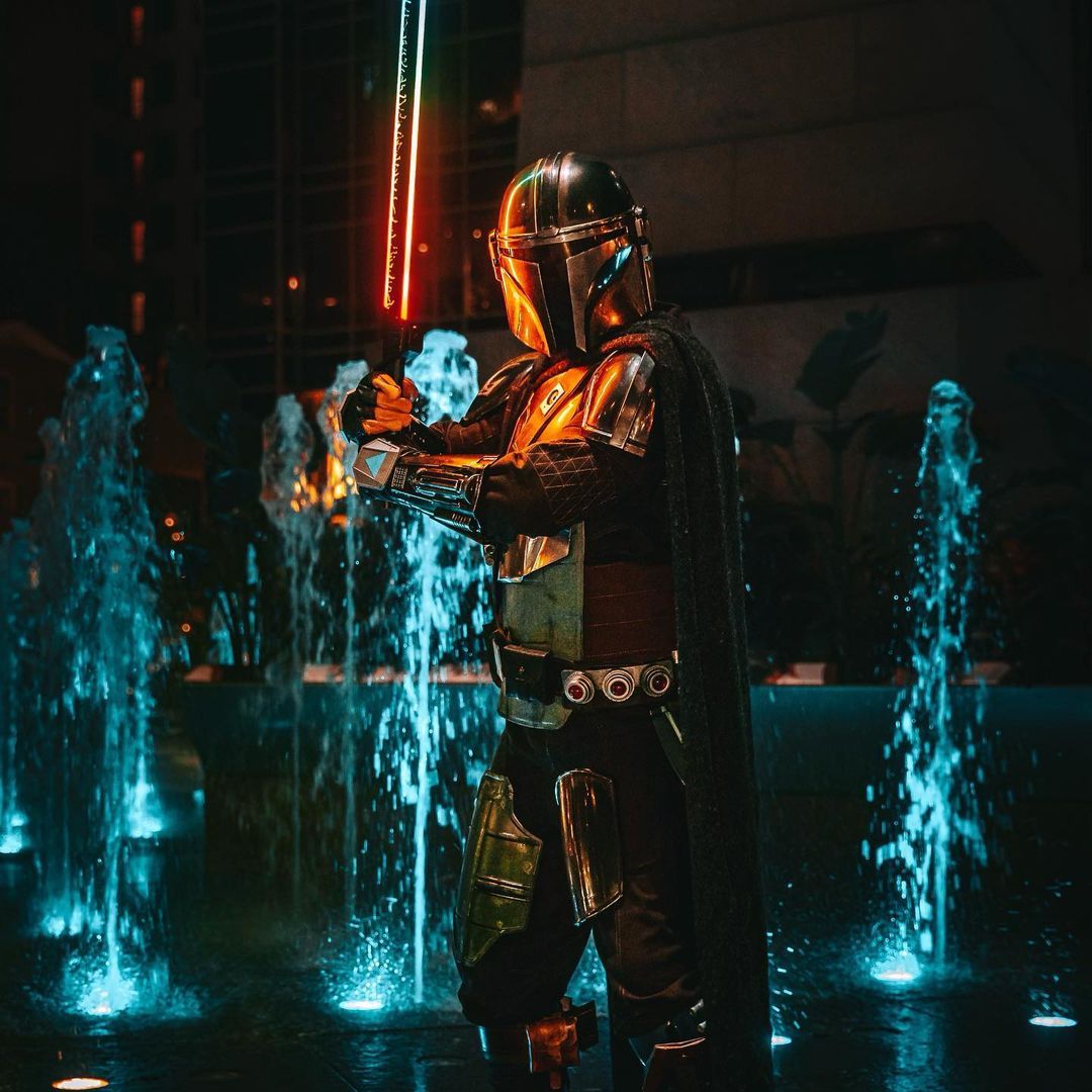 Este cosplay de Jake Fogg le muestra en un traje futurista de Mando y empuñando el Darksaber, que, como todos sabemos, es muy probable que jamás vuelva a aparecer en este universo tras el final de la temporada 3. Su color naranja lo hace aún más amenazante y su traje tiene algunas invenciones que Din Djarin todavía no ha inventado, dando un resultado impresionante, digno de que se fijen en él para la próxima temporada.
