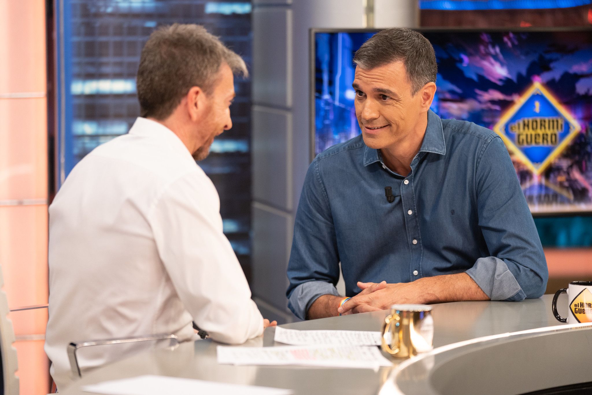 A pesar de la broma de Sánchez al principio, el encuentro entre Motos y el presidente estuvo marcado por la tensión y los encontronazos entre ambos. El primero de todos vino al no ponerse de acuerdo como dirigirse, ya que el presentador le llamaba de "usted" mientras que el presidente le respondía con "Pablo". "Si quieres nos llamamos de tú", comentó el conductor a lo que Sánchez contestó que lo que "fuera más cómodo". Pero no se pusieron de acuerdo y cada uno siguió con lo suyo.