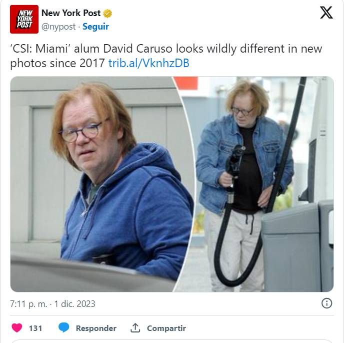 David Caruso, el actor que daba vida al teniente, es tendencia estos días porque ha reaparecido -o, al menos, los medios han logrado captarle con sus cámaras- después de 6 años de no verle en público. Ha sido visto repostando y dando un paseo en San Fernando Valley, en California. Las imágenes llaman la atención porque se aleja mucho de la imagen que teníamos de él.