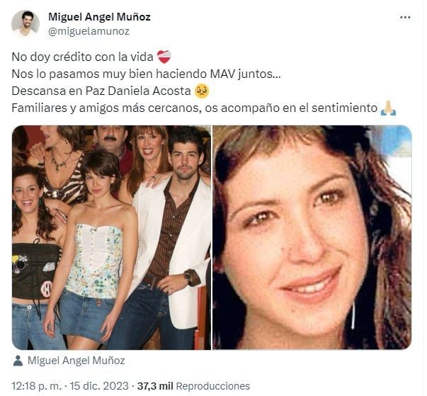 Ha sido el actor Miguel Ángel Muñoz el que ha anunciado la noticia en redes sociales. Con este sentido mensaje se ha despedido de la intérprete: "No doy crédito con la vida. Nos lo pasamos muy bien haciendo MAV juntos… Descansa en Paz Daniela Costa Familiares y amigos más cercanos, os acompaño en el sentimiento".