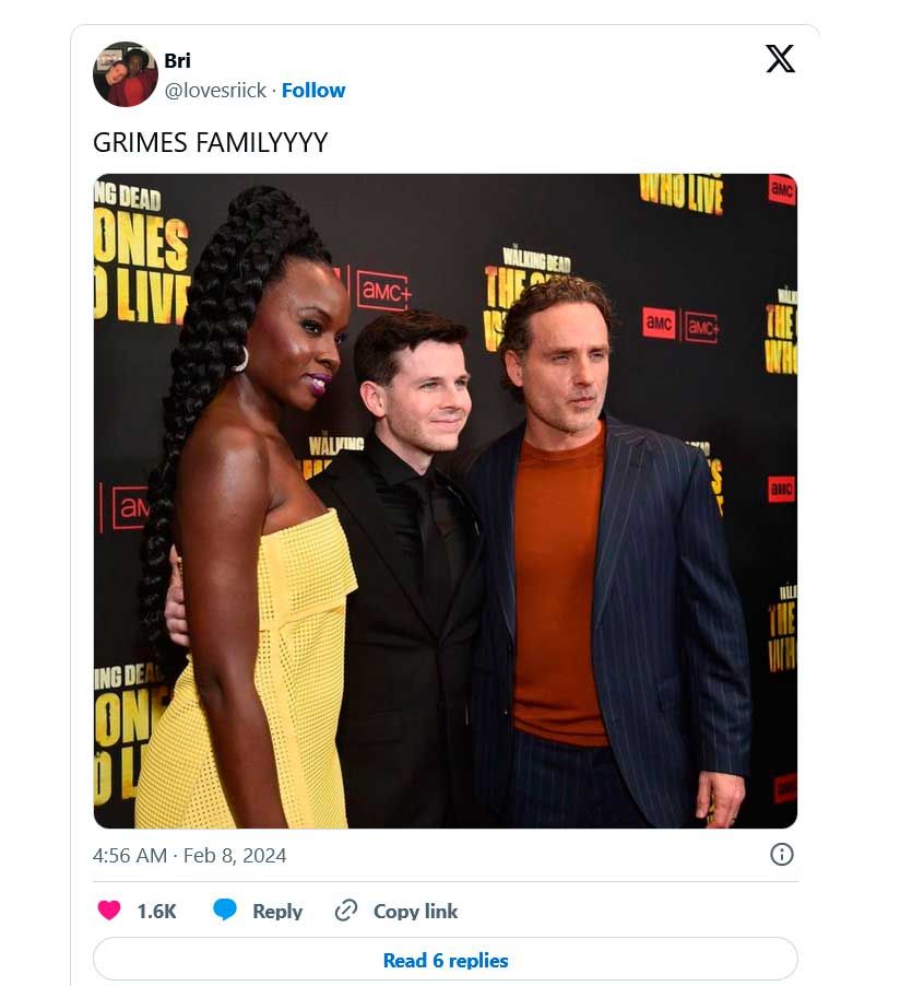 Desde que el nucleo familiar de los Grimes comenzó a ser víctima de los peligros del nuevo mundo, cada vez que los distintos miembros del clan vuelven a reunirse levantan pasiones entre los fans. La última vez volvimos a verles reuniéndose ha sido con motivo del estreno de la esperada nueva serie The Walking Dead: The Ones Who Live, que seguirá los pasos de Rick y Michonne y permitirá saber a los espectadores qué fue de ellos desde que abandonaron Alejandría. Asimismo, la serie ofrecerá la respuesta a lo que los fans se han preguntado desde entonces: ¿Consiguieron volver a encontrarse?