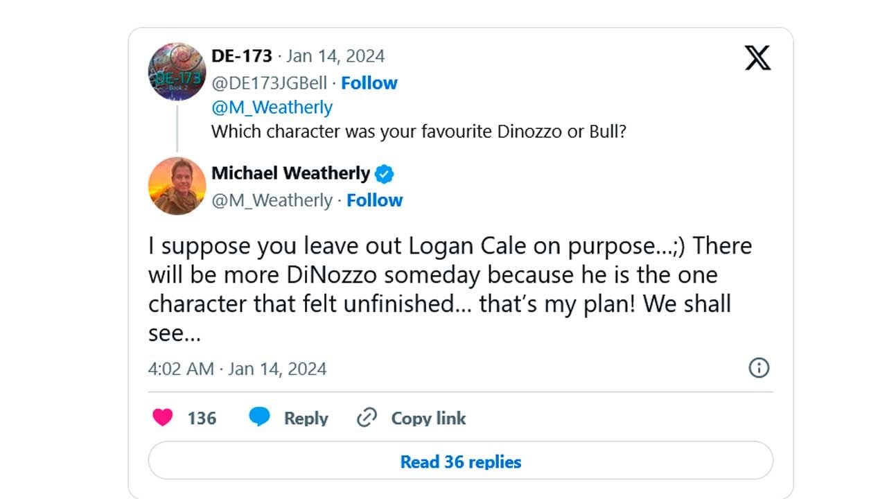 El actor aprovechó para mover ficha y hacer un guiño a los responsables de la serie a través de su red social cuando un fan le preguntó si le gustaba más interpretar a DiNozzo en NCIS o a Jason Bull de la serie Bull: "Habrá más DiNozzo algún día porque él es el único personaje que parece inacabado", sentenciaba para la alegría de los fans.