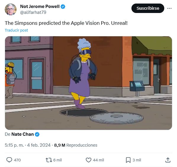 Es tentador hacer el paralelismo, pero Los Simpson no intentaban parodiar el futuro. Las gafas de Realidad Virtual ya eran bastante reales en 2016, cuando se emitió el episodio, y los guionistas sólo exageraron hasta dónde podían llegar. Y, aun así, son aparatos distintos a los que está vendiendo Apple, cuyo principal activo son que no necesitas más que las gafas (por lo que no se requieren guantes u otro aparato para acceder al mundo virtual) y que las aplicaciones se fusionan con el entorno, no te abstraen completamente. Por desgracia, no todo lo puede predecir la serie.
