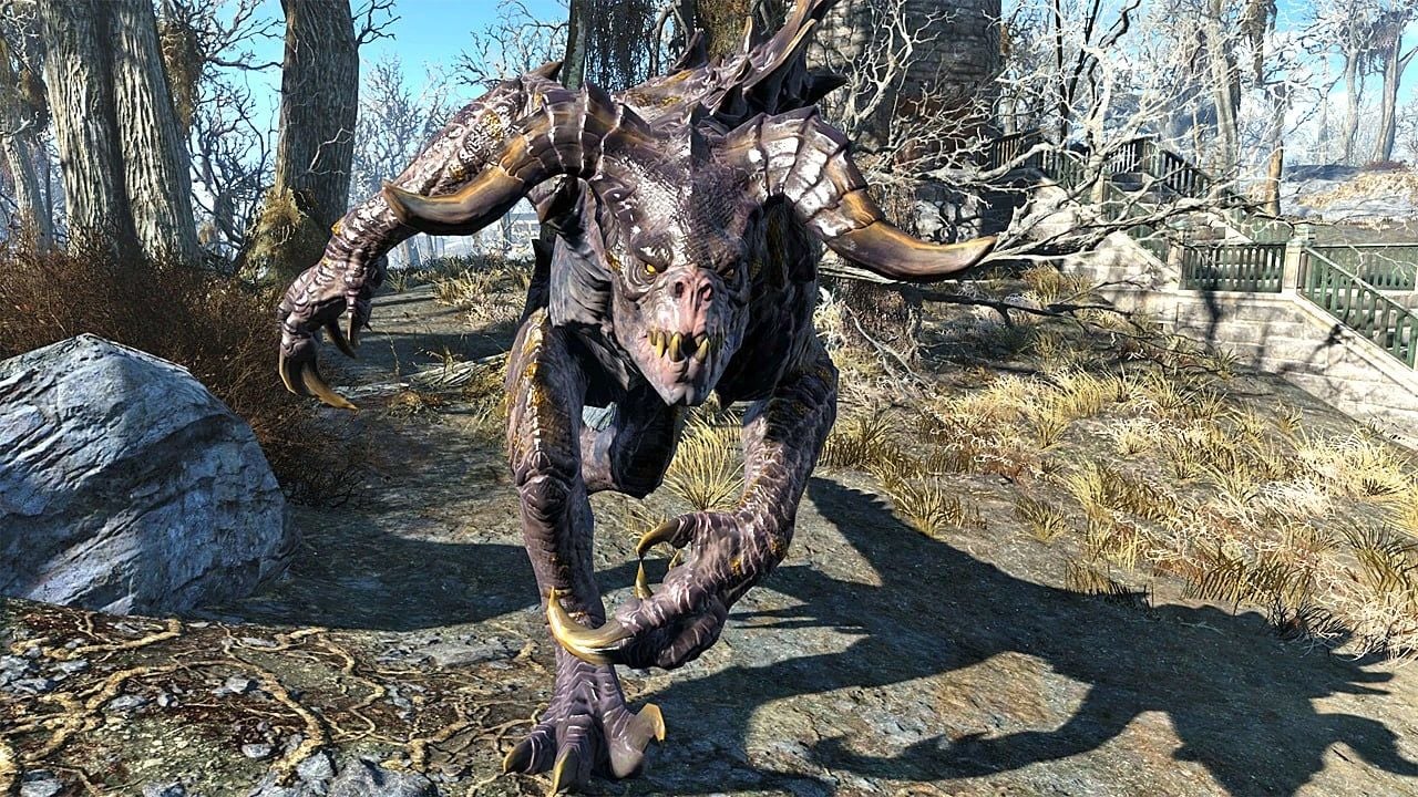 Sin embargo, los fans de los juegos de Fallout seguro que han reconocido la característica forma de la cabeza y los dos cuernos curvados. La criatura fallecida son conocidas en los videojuegos como Saguinarios o Garras Mortales ('Deathclaw' en la versión original), y el personaje que aterriza junto a ella en la escena mencionada puede considerarse afortunado de que el animal ya haya fallecido.