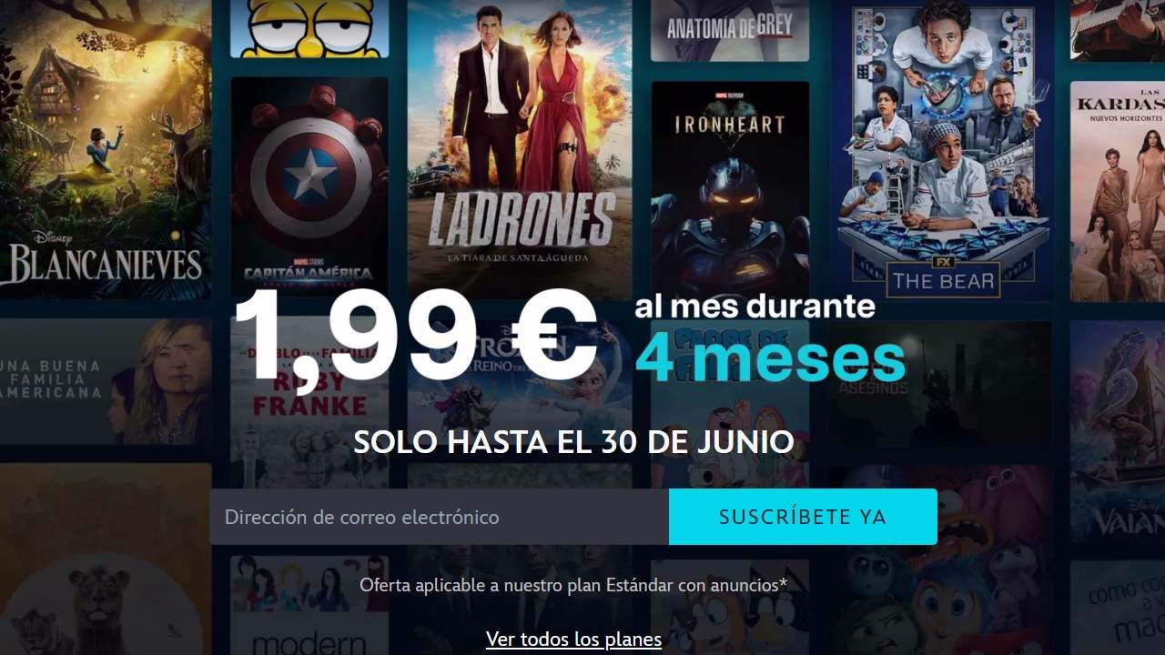 Si no tienes Disney+, enhorabuena, porque esto puede que te interese. Los nuevos clientes y aquellos sin suscripción activa pueden suscribirse a Disney+ estándar con anuncios hasta el próximo 30 de junio por solo 1,99 euros al mes durante cuatro meses. Esto supone un ahorro del 66 % si lo comparamos con el precio mensual actual de 5,99 euros al mes.