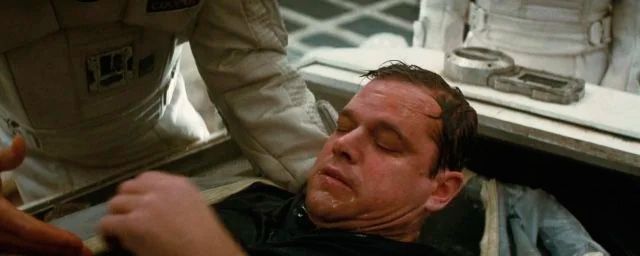 Solo cuando Cooper, el personaje de Matthew McConaughey, abre la cámara descubrimos que el astronauta es interpretado por Matt Damon, cuya presencia en la película no se había revelado ni en los tráilers, ni en los pósters, ni resto de material promocional de la película en un intento de Christopher Nolan de sorprender a los espectadores. Aunque el papel de Damon en la cinta es tardío, también es absolutamente crucial en la película. Curiosamente, también, el nombre del personaje, Mann, es una contracción de Matt Damon.