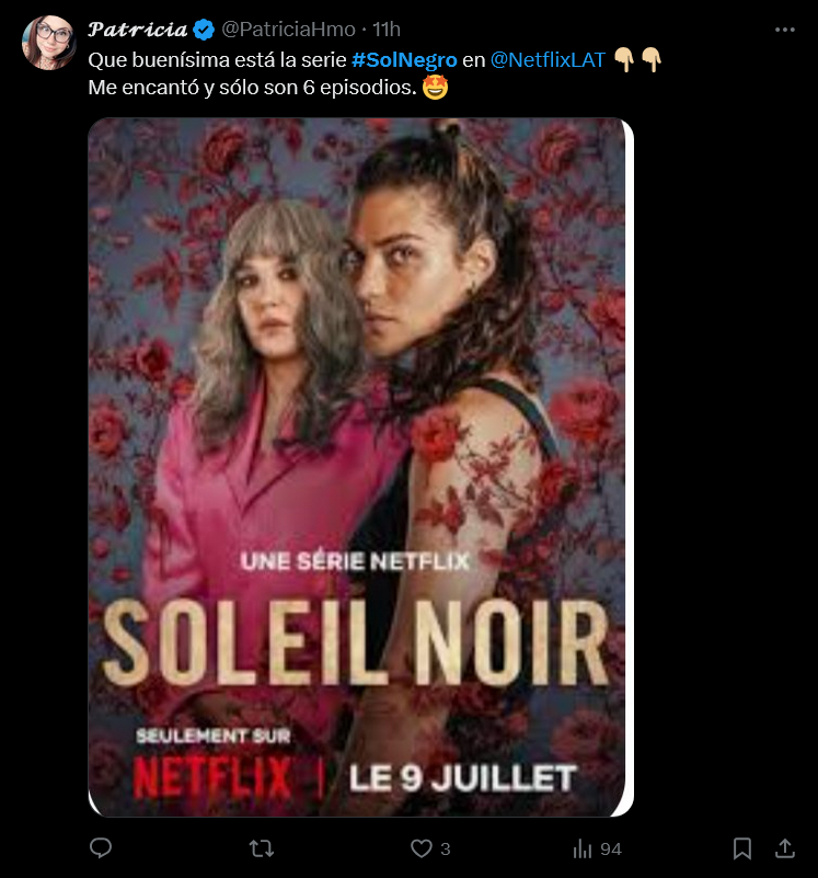 Creada y escrita por Nils-Antoine Sambuc y protagonizada por un elenco de populares intérpretes franceses como Ava Baya, Guillaume Gouix, Louise Coldefy e Isabelle Adjani, entre otros, Sol negro es un 'thriller' no recomendado para menores de 16 años que combina drama familiar y suspense en seis episodios que pueden disfrutarse en poco más de 5 horas.
