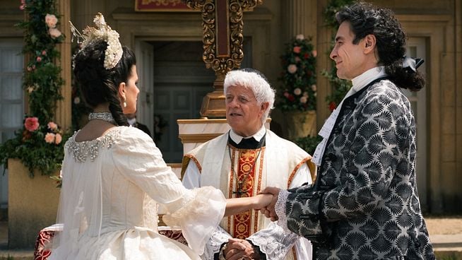 Grabado en un entorno natural protegido en La Pinilla (Segovia), entre bosques y montañas, el enlace matrimonial es el rodaje de la serie con mayor número de profesionales con de 200 personas siendo parte del equipo. Y no solo eso. Un vestuario espectacular, carruajes de caballos, jardinería ornamental y un templete rústico han sido claves para recrear una auténtica celebración de época.
