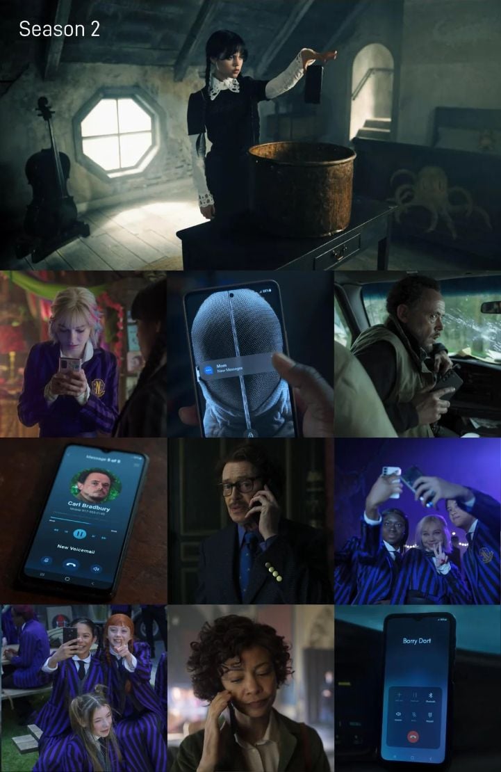 Normalmente, en las series y películas, los protagonistas tapan la marca de los teléfonos con la mano y la interfaz es una ficticia, para no hacer publicidad (o todo lo contrario, en caso de que el dueño del móvil sea el villano de turno). Pero en esta nueva temporada de Miércoles, Apple ha sido prácticamente una de las protagonistas, con móviles a la vista, llamadas de teléfono, selfies constantes y hasta una aparición en los últimos minutos de esta primera parte, que algunos han calificado como "un anuncio".