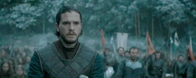 Es una flecha de Ramsay, disparada en la espalda del joven Rickon Stark (Art Parkinson) en pleno campo de batalla, la que prende la chispa. Sordo a todo salvo a su ira contra el enemigo, Jon carga entonces solo y de frente contra las fuerzas Bolton, finalmente alcanzado por sus propias tropas, que chocan con sus adversarios en un espantoso estruendo.