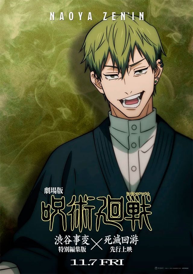 Pero muchos fans se fijaron en el adelanto de la revelación del diseño de personaje de Naoya Zenin, personaje que ha generado una gran expectación, especialmente para los fans del manga de Gege Akutami, al mantener al personaje como algo misterioso. Puedes ver su póster oficial individual en esta misma noticia.