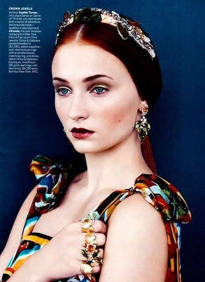 Habrá que esperar a diciembre tanto para ver toda la sesión de fotos realizada a la actriz como para deleitarse con la entrevista, aunque ya ha salido a la luz una primera imagen en la que Sophie Turner posa realmente preciosa. Destacan sobre todo su piel de porcelana y su brillante pelo rojo, que encajan a la perfeccción con el estilo antiguo que posee la imagen. Puedes verla a continuación: