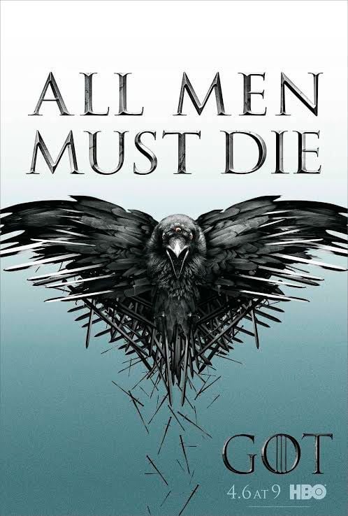 Aunque esta misma semana os mostrábamos nada más y nada menos que 18 póster de Juego de Tronos dedicados a los personajes principales, la cadena estadounidense HBO no ha dudado en lanzar un nuevo póster oficial de la cuarta temporada de la ficción. El cartel tiene como principal protagonista el lema de la nueva entrega de la popular adaptación televisiva: Todos los hombres deben morir (All men must die), que en valirio es "Valar Morghulis". Asimismo, un cuervo de tres ojos y hecho de espadas completa el póster, que es todo un homenaje a la mitología de Juego de Tronos.
