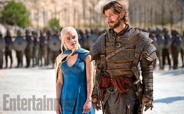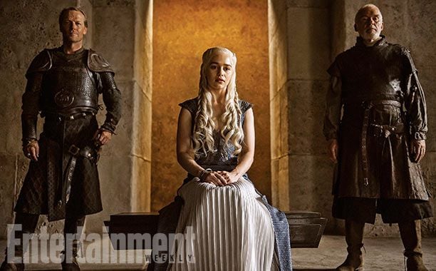 A falta de apenas dos semanas para el estreno de la cuarta temporada de Juego de Tronos, 'Entertainment Weekly' ha lanzado seis imágenes exclusivas de los nuevos episodios de la popular serie. Daenerys Targaryen (Emilia Clarke) es la protagonista de tres de ellas y podemos verla tanto acompañada por sus fieles Jorah (Iain Glen) y Barristan Selmy (Ian McElhinney) como por su nuevo fichaje, Daario Naharis, quien en la cuarta entrega será interpretado por Michiel Huisman y no por Ed Skrein como en la tercera. Además, en la tercera fotografía, Dany aparece con uno de sus dragones, que en los nuevos episodios estará aún más crecidos. Joffrey y Margaery, Jaime y Cersei y Arya son los protagonistas de las imágenes restantes.