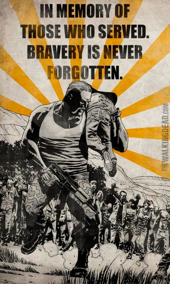 Con motivo del Memorial Day -día que conmemora a los soldados estadounidenses que han perdido la vida en combate- celebrado este lunes en Estados Unidos, el equipo de The Walking Dead quiso hacer un homenaje a uno de los personajes más queridos del cómic: Abraham Ford, un militar superviviente del apocalipsis zombi que asola al planeta Tierra. El tributo fue realizado desde el Twitter oficial del cómic en que se basa la serie y no desde el de la ficción en AMC.