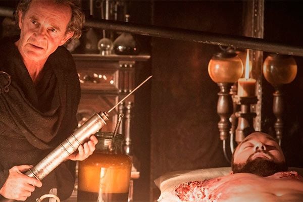 En el último episodio de la cuarta entrega, Gregor Clegane está en estado de coma y muriéndose de dolor debido al veneno que le inyectó Oberyn a través de su espada. La única forma de salvarle es, según Qyburn, utilizando métodos poco ortodoxos, a lo que Cersei accede. Eso sí, Qyburn mantendrá a la Montaña con vida, pero el proceso "le cambiará".