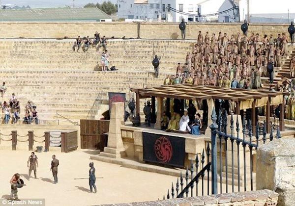 En las imágenes en cuestión vemos a Daenerys (Emilia Clarke) y Tyrion (Peter Dinklage) compartiendo el palco de honor de la plaza de toros de Osuna, donde previsiblemente tendrán lugar los torneos de lucha en la arena con los que la Khaleesi quiere acabar. Sin embargo, en las novelas de George R.R. Martin el menor de los Lannister no sólo no ha conocido a la famosa Madre de Dragones, sino que, lejos de ocupar un privilegiado lugar como espectador, ha tenido que actuar como esclavo en la arena.
