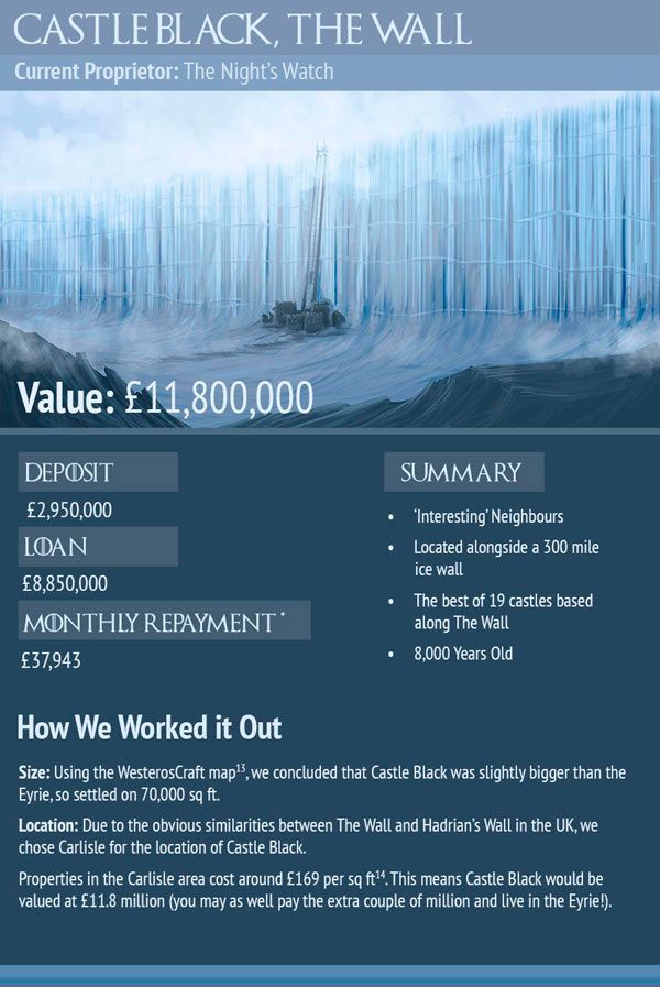 ¿Alguna vez has pensado vivir en Invernalia? ¿O en El Muro? La inmobiliaria London & Country Mortgages ha calculado lo que podría costarte. Anterior1 - 12 - 23 - 34 - 45 - 56 - 67 - 7Siguiente Casi 12 millones de libras para vivir en una casa con vecinos "interesantes" y 8.000 años de antigüedad.