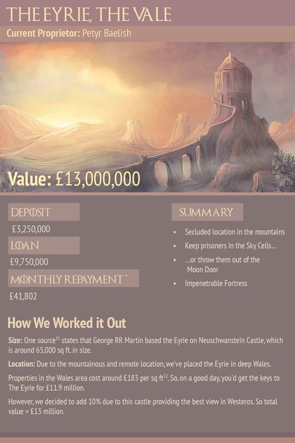 ¿Alguna vez has pensado vivir en Invernalia? ¿O en El Muro? La inmobiliaria London & Country Mortgages ha calculado lo que podría costarte.