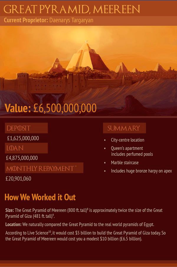 ¿Alguna vez has pensado vivir en Invernalia? ¿O en El Muro? La inmobiliaria London & Country Mortgages ha calculado lo que podría costarte. Anterior1 - 12 - 23 - 34 - 45 - 56 - 67 - 7Siguiente Piscinas perfumadas, una localización inigualable, escaleras de mármol... Todo esto costará ¡6.500 millones!