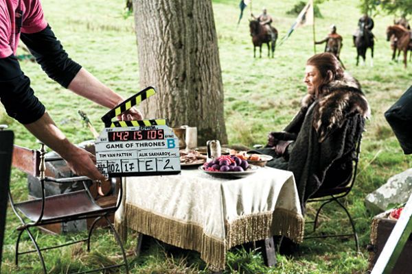 Sean Bean (Ned Stark) antes de que suene la claqueta y comience el rodaje de la escena.