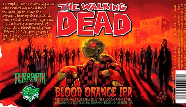 Según informa Comicbook, Terrapin Beer Company y The Walking Dead se han unido para elaborar la cerveza oficial de los muertos vivientes: “Elaborada con sangrienta piel de naranja y una cantidad terrorífica de lúpulo, esta bebida roja sangre estará disponible para el próximo apocalipsis zombi”.