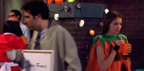 El episodio de la temporada 9, "La partida de póquer", cuenta cómo Marshall y Lily están enfadados con Ted porque no les regaló nada para su boda, mientras que éste está cabreado porque no recibió ninguna tarjeta de agradecimiento. En el capítulo aparecen en una fiesta de Halloween, Marshall vestido de regalo y Ted de tarjeta de agradecimiento, en la que hay una invitada muy especial, ¿te diste cuenta? Sí, detrás de Ted se puede ver a Katie Holmes como la Calabaza tan buscada.