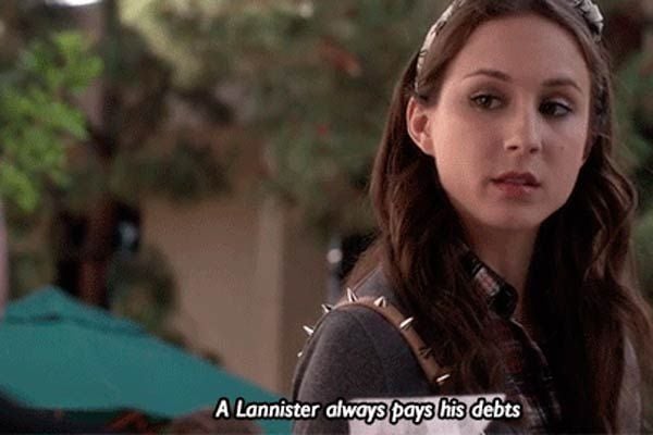 Hasta las pequeñas mentirosas citan Juego de tronos. En el quinto episodio de la cuarta temporada, Spencer le recuerda a un compañero de instituto que "Los Lannister siempre pagan sus deudas".