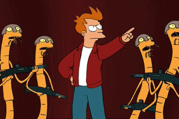 7. De nuevo, desde Kmark Time, llega la teoría de que las lombrices que conviven con Fry cuando este es infectado (en el segundo episodio de la tercera temporada tras comer un sandwich de ensalada de huevo en mal estado), motivan a Fry a ser mejor persona y a actuar de forma más madura para conquistar a Leela -algo que consiguió con las lombrices en su cuerpo, pero que debe lograr sin ellas-.
