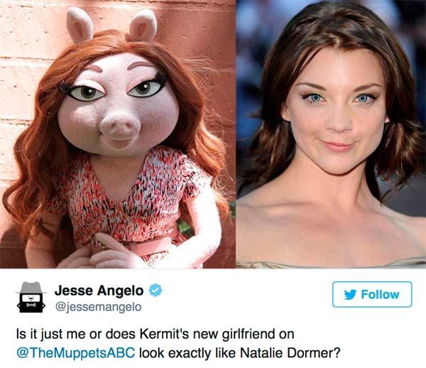 De hecho, según publica Entertainment Weekly, Natalie Dormer contestó amablemente a la pregunta sobre las recientes comparaciones con la cerdita Denise, la nueva novia de la Rana Gustavo en The Muppets, que han circulado por la red. Incluso el CEO del New York Post Jesse Angelo lo comentó en su cuenta de Twitter: