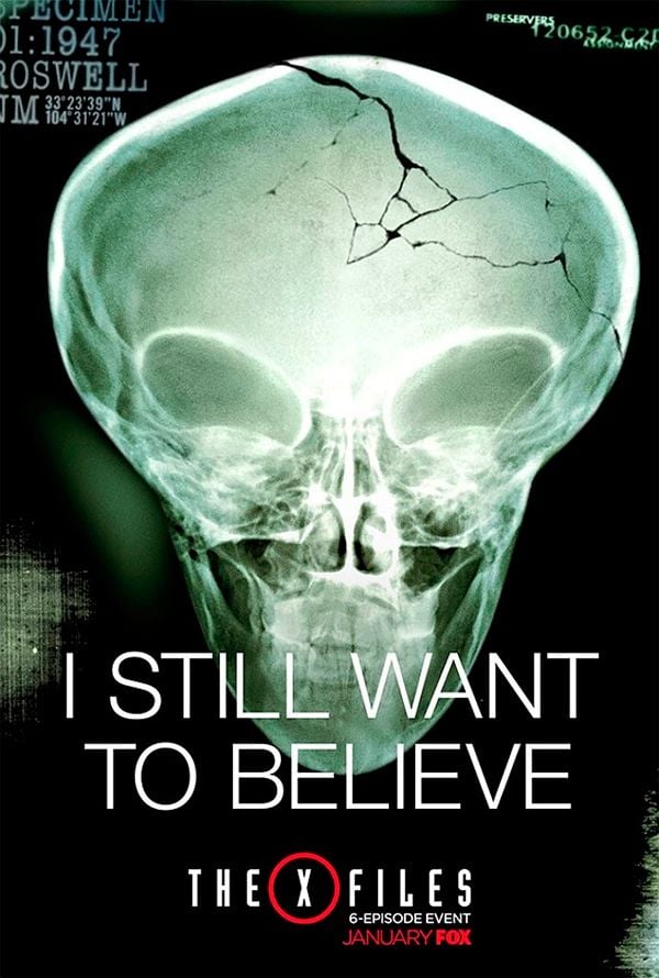El nuevo póster se trata de una radiografía de lo que parece ser una cabeza de un alienígena y que va acompañada del texto “Todavía quiero creer”: