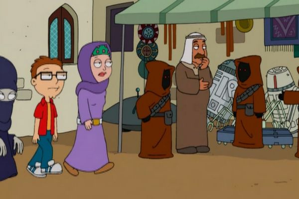 Como en Padre de familia, en esta producción creada por Seth MacFarlane abundan las referencias al universo de La Guerra de las Galaxias. Una muy sutil y divertida se encuentra en el episodio 'Stan de Arabia: Parte 1' (1x12) cuando se puede ver a los Jawas vendiendo droides en un mercado de Arabia Saudita.