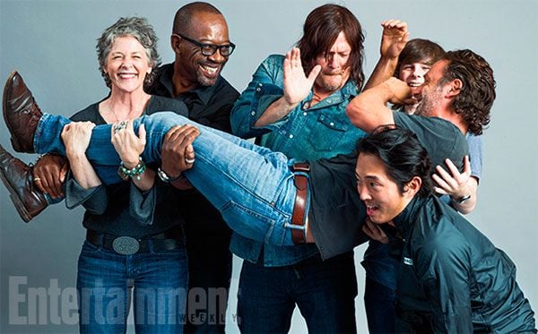 Andrew Lincoln (Rick), Chandler Riggs (Carl), Steven Yen (Glenn), Melissa McBride (Carol), Norman Reedus (Daryl) y Lennie James (Morgan) son los seis actores que han podido sobrevivir al apocalipsis zombi de The Walking Dead desde la primera temporada. Puedes ver la divertida imagen a continuación: