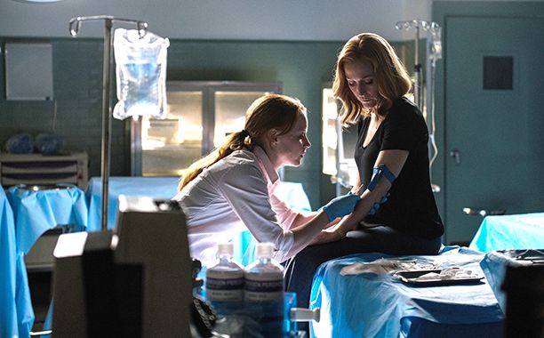 Annabeth Gish está de vuelta como la agente Monica Reyes en el episodio 'My Strugle II' (10x06) que marca el final de la décima temporada de Expediente X. En un nuevo grupo de fotos publicadas, Reyes y Dana Scully (Gillian Anderson) parecen tener mucho sobre lo que ponerse al día. En las demás, podemos ver a Scully trabajando con el agente Miller (Robbie Amell) y Einsten (Lauren Ambrose) a detener la propagación de una misteriosa enfermedad.