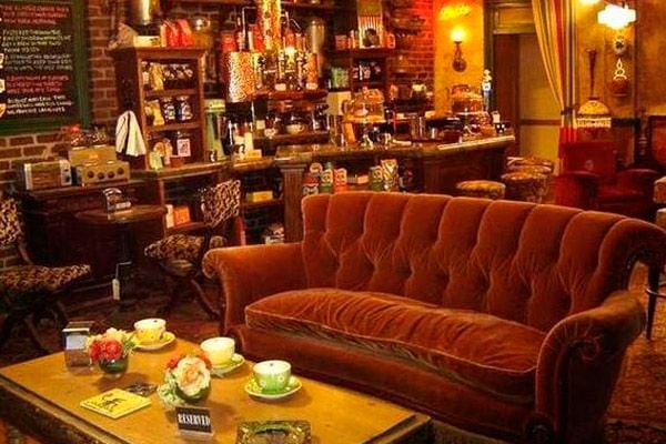 Ahora resulta complicado hacerse a la idea de que Friends tuvo problemas económicos en algún momento, pero así fue. Para crear uno de los lugares más icónicos de la televisión, Central Perk, tuvieron que recurrir a las sobras de otros platós. Greg Grande acudió al almacén de atrezzo de Warner Bros. para buscar muebles y allí encontró el famoso sofá: "Literalmente en el sótano, en una de las esquinas del fondo, estaba este sofá que era precioso. Estaba muy viejo. Tenía algunas rasgaduras en la tela, pero lo limpiamos". La butaca verde que aparecía al lado del sofá también fue encontrada en el sótano.