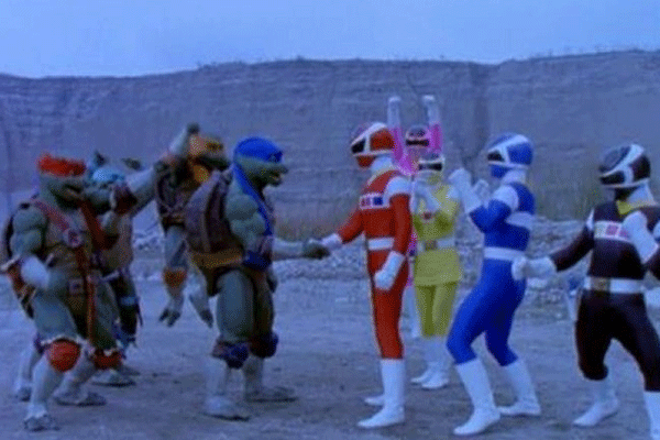 3. Power Rangers In Space y las Tortugas Ninja en 1998. ¡Sí esto pasó! Durante una pelea en la que todo parece perdido para los rangers, las tortugas aparecen para salvarles.