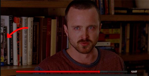 En el décimo segundo episodio de la quinta temporada de la serie, mientras el personaje de Aaron Paul, Jesse Pinkman, está sentado en el despacho de Hank Schrader, podemos ver que en la estantería que tiene justo detrás hay un DVD de Breaking Bad.