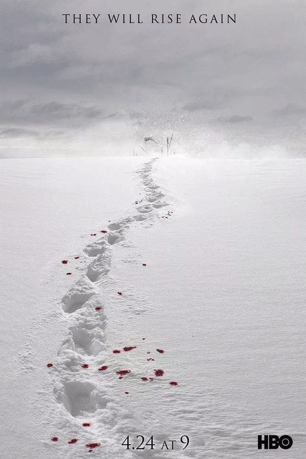 Se abren las apuestas sobre el significado de esta imagen. Bajo el título 'The Will Rise Again' ('Ellos se levantarán de nuevo') se puede ver un camino formado por huellas sobre la nieve, y junto a estas marcas hay gotas de sangre. Las teorías principales apuntan a que se refiere a los caminantes, y a que, o bien estarán heridos o dejarán muchos heridos en su paso a través del muro para conquistar el norte, y Poniente en general.