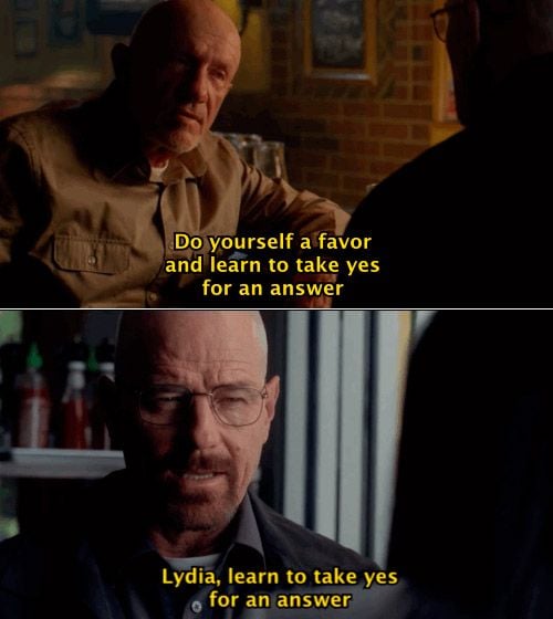 Parece que Walter White copia las manías de sus víctimas después de matarlas. Tras acabar con Loco-8, un distribuidor de metanfetamina, White comienza a cortar los bordes de sus sándwiches al igual que él. No es el único con el que lo ha hecho. Gus solía conducir un Volvo y, curiosamente, el primer plano que aperece en el capítulo siguiente al asesinato del villano es el coche de White: un Volvo. También copia una frase de Mike después de matarle. White le dice a Lydia que tiene que aprender a aceptar un sí como respuesta, lo mismo que le dijo Mike en la temporada 4.