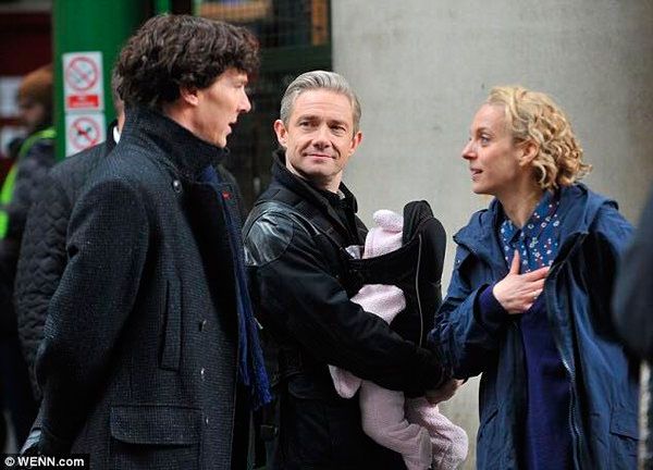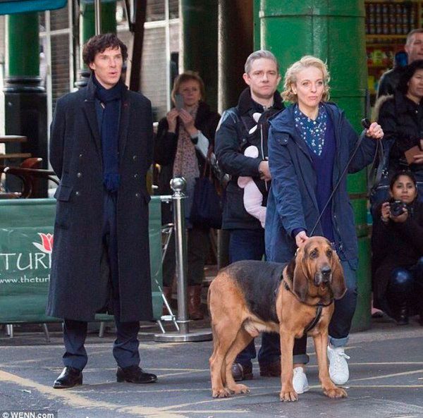 En estas nuevas imágenes, vemos a Benedict Cumberbatch paseando a un perro – quizás un recordartorio de Redbeard - además de a Martin Freeman y Amanda Abbington con su bebé. Puedes ver las imágenes a continuación: