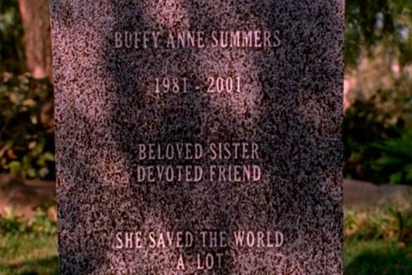 Parecía que Buffy había llegado a su trágico destino final en la quinta temporada. Después de que decida sacrificarse para salvar a Dawn Summers, se lanza para entrar en un portal y muere. La tumba lo dejaba claro: "Ella salvó el mundo". Afortunadamente para los seguidores, Buffy regresó en la sexta temporada.