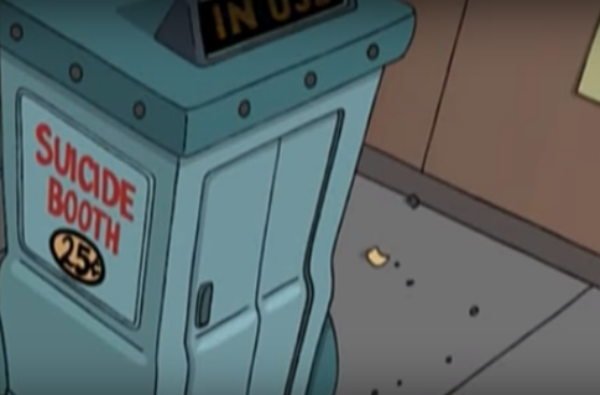 5. Desde el primer episodio de la serie se puede ver en ella las famosas cabinas de suicidio, algo que Fry confunde con una cabina telefónica gracias a lo que salva la vida de Bender. Pese a que la idea de la eutanasia ha sido utilizada previamente en la ciencia ficción, la visión de Futurama inspiró clínicas dedicadas en acabar con la vida de aquel que así lo desee en ciertos países cuyas leyes lo permiten.
