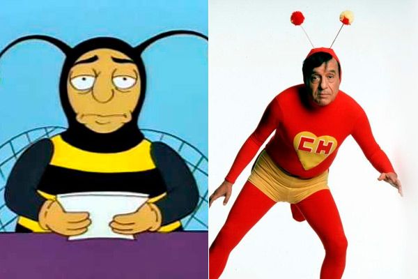 El Chapulín Colorado es otro personaje infantil que dio pie a una versión animada un tanto alejada de la realidad. Roberto Gómez Bolaños creó al Chapulín como parodia de los superhéroes y Los Simpson crearon al Hombre Abeja inspirados por este, por lo tanto podría tratarse de una parodia de una parodia.