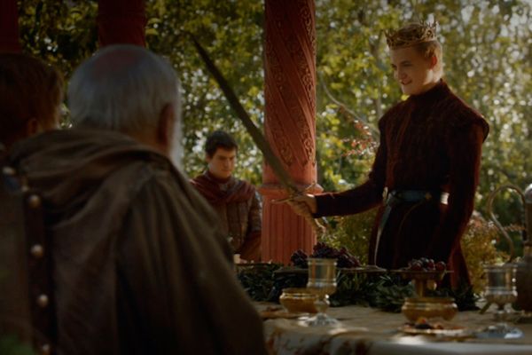 En cierto momento, Arya le dice al Perro que mucha gente pone un nombre a sus espadas. El Perro tiene a alguien en mente cuando le responde: "muchos idiotas". En realidad no estaba insultando a Arya, sino a Joffrey, quien anteriormente había dicho: "Una espada tan buena debería tener un nombre, ¿cómo debería llamarla?".