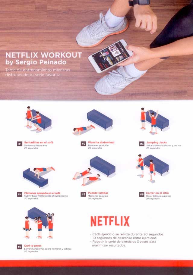 Justo hoy 20 de octubre, hace un año que Netflix llegó a España y por ello la famosa plataforma VOD ha programado un evento especial donde además de enseñarnos varios aspectos concretos y especiales de Netflix, también nos ha presentado una tabla de entrenamientos para disfrutar de tus series favoritas y ponerte en forma a la vez.