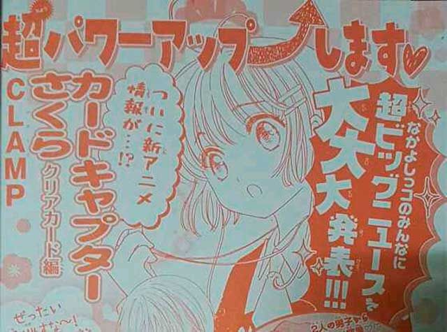 Tal como ha confirmado la propia editorial japonesa en el último número de Cardcaptor Sakura, Sakura Kinomoto volverá con una nueva serie anime. “Un nuevo anime está en marcha” es el texto que acompañaba a este esperado número del manga nipón.