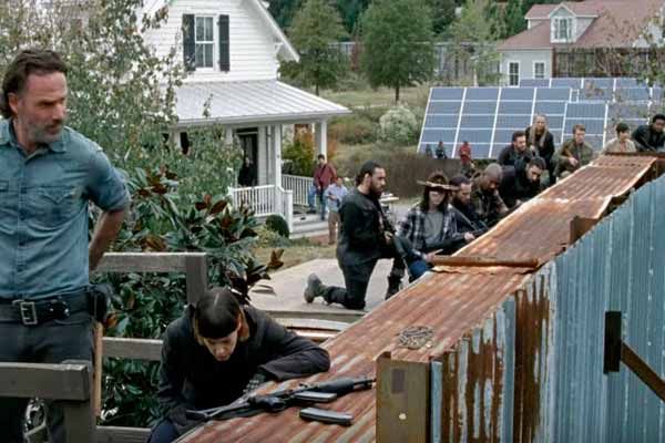 Ya en el primer fotograma del avance vemos como un grupo se aproxima a los muros de Alejandría y, dado que lo hace con bicicletas y un camión de basura, podemos dar por sentado de que se trata de los chatarreros, la comunidad liderada por Jadis que vive en un vertedero y que ha exigido armas a Rick a cambio de ceder su ejército. Cómo se enterarán de la llegada de los Salvadores a Alejandría es un misterio, pero a Rick le vendrá como anillo al dedo ya que en las imágenes vemos cómo también ellos forman parte de la defensa de Alejandría.