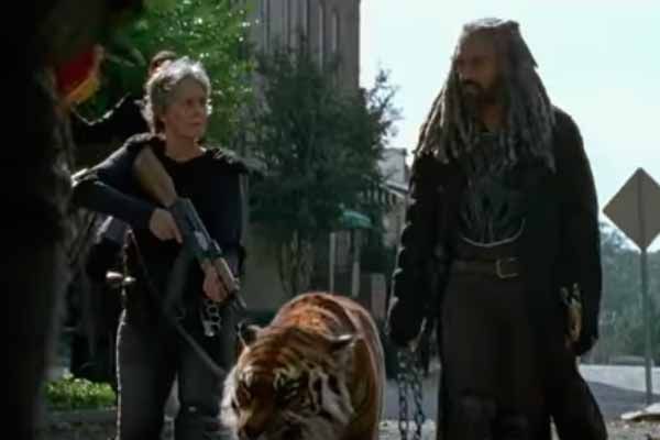 Tras acabar convenciéndose de la necesidad de hacer frente a los Salvadores a pesar de su negativa inicial, Ezekiel aparece en la promo junto a su enorme tigre Shiva, Carol, y algunos de sus hombres. También vemos a Morgan. Y todos ellos van armados hasta los dientes, así que podemos dar por sentado que también están dispuestos a darlo todo en el enfrentamiento.