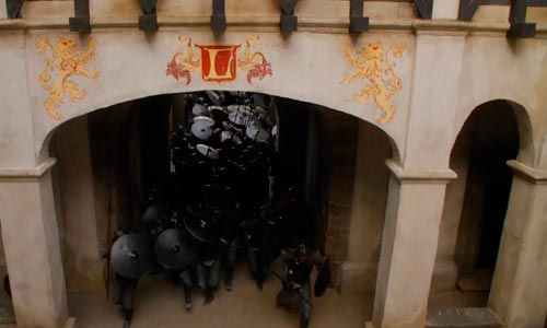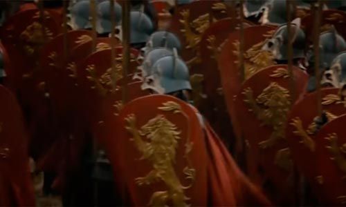 Dany y su ejército Targaryen, emblema que vemos en sus uniformes, no tienen intención demorarse en su objetivo y así vemos como sus hombres atacan Roca Casterly, fortaleza de los Lannister.