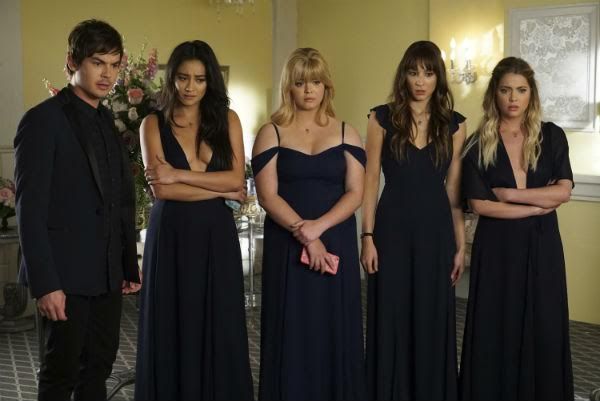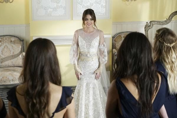 Será el 27 de junio cuando la ficción se despida con el episodio 'Til DeAth Do Us Part' (7x20) que emitirá Freeform y gracias a People, los fans pueden ver el vestido de novia de Aria antes de que aparezca en el capítulo en cuestión. Además, el resto de fotografías también muestran a sus damas de honor: Emily (Shay Mitchell), Hanna (Ashley Benson), Spencer (Troian Bellisario) y Alison (Sasha Pieterse). En las imágenes también aparece un desconocido bebé y una misteriosa llamada a Aria que, por la cara de sus amigas, parece no ser nada bueno.